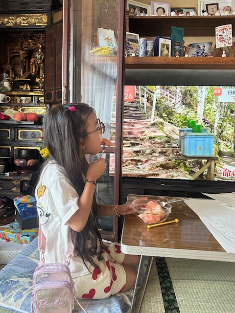 私はおばあちゃんがいる福島に行き、桃をいっぱい食べました!