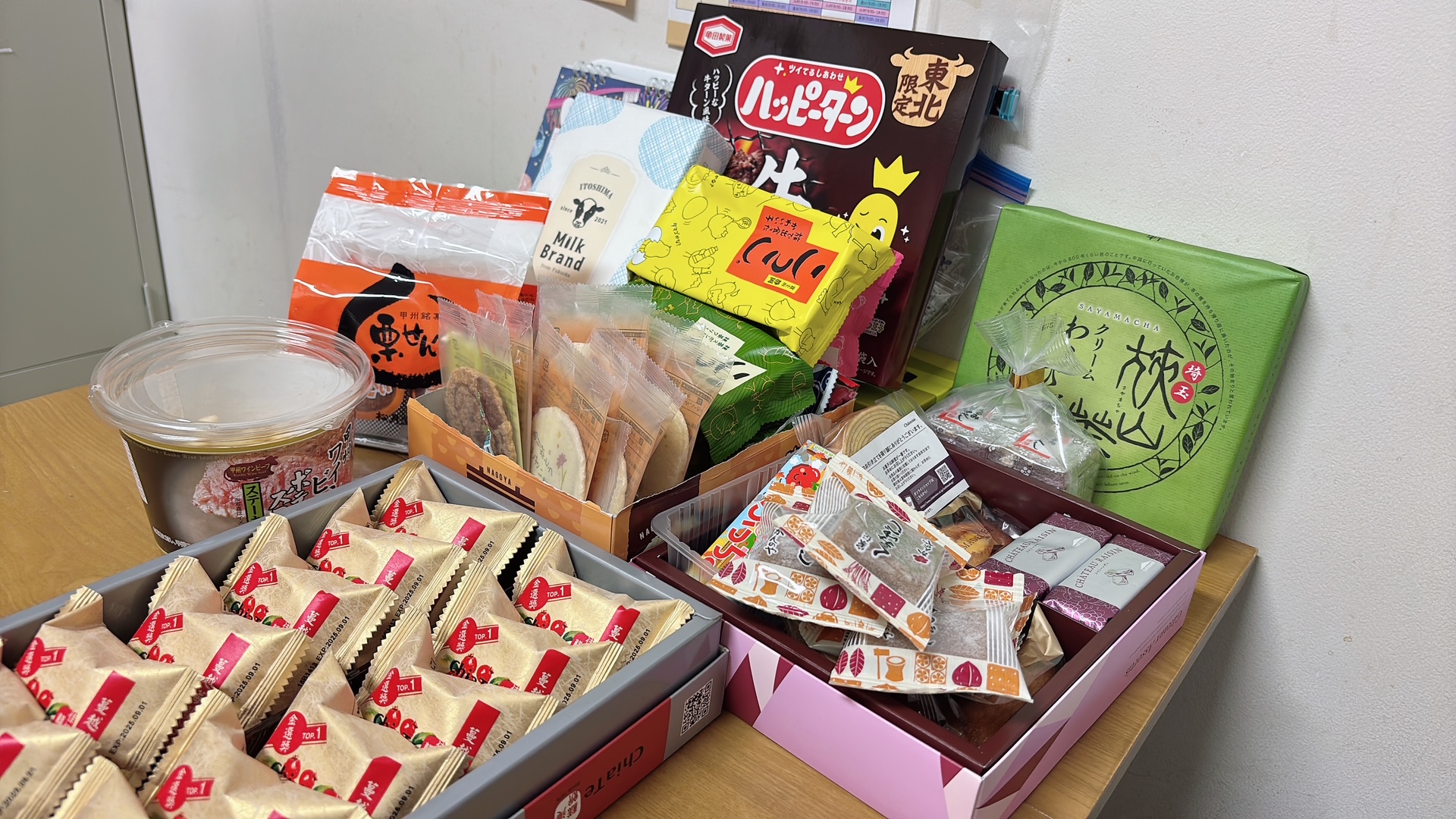 スタッフそれぞれが帰省先や旅先のお土産を買ってきてくれたので、